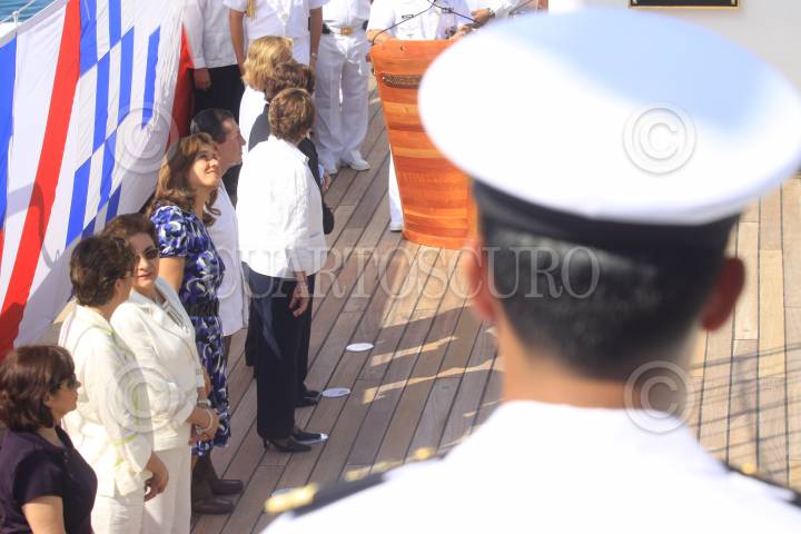 ACAPULCO , GUERRERO 11DICIEMBRE2009.- Margarita Zavala, primera Dama de México, despidió a los tripulantes de la escuela Velero de México ya que al mediodía zarpó de su puerto base donde se hizo a la mar nuevamente iniciando el crucero de instrucción Bicentenario 2010, el cual tendrá una duración de 212 días, por los mares de Centro Y Sudamérica. FOTO:SÁSHENKA GUTIERREZ/CUARTOSCURO.COM