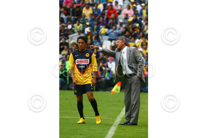MÉXICO D.F., 20ABRIL2008.- El Técnico del equipo América Ruben Omar Romano da instrucciones al jugador José Antonio Castro durante el encuetro con el equipo de Atlante, donde el marcador final fué 1-0 favor Atlante. FOTO: SÁSHENKA GUTIÉRREZ/CUARTOSCURO.COM