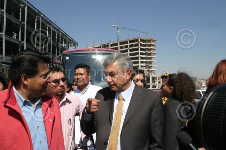 MEXICO, D.F. 17ENERO2004.- Andrés Manuel López Obrador, jefe de gobierno de la ciudad de México al término del recorrido por el predio el "Encino" que realizó con miembros de la sección instructora. FOTO: Nelly Salas/CUARTOSCURO.COM