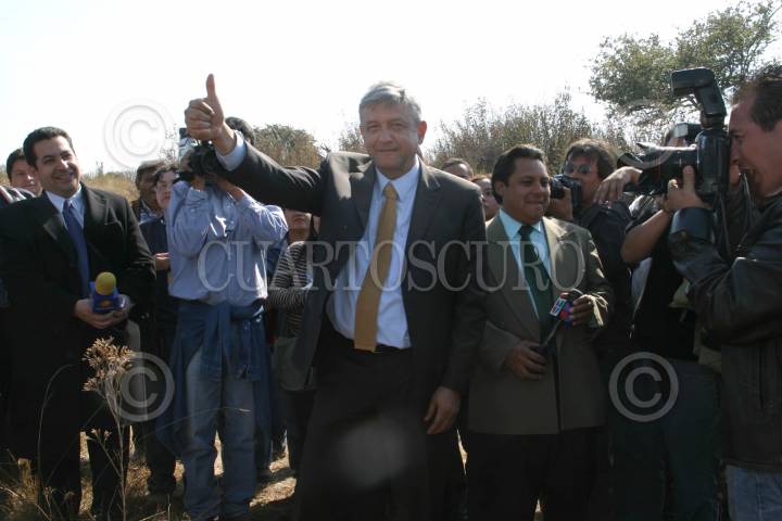 MEXICO, D.F. 17ENERO2004.- Andrés Manuel López Obrador, jefe de gobierno de la ciudad de México realiza algunas declaraciones a reporteros durante el recorrido por el predio el "Encino" que realizó con miembros de la sección instructora. FOTO: Nelly Salas/CUARTOSCURO.COM