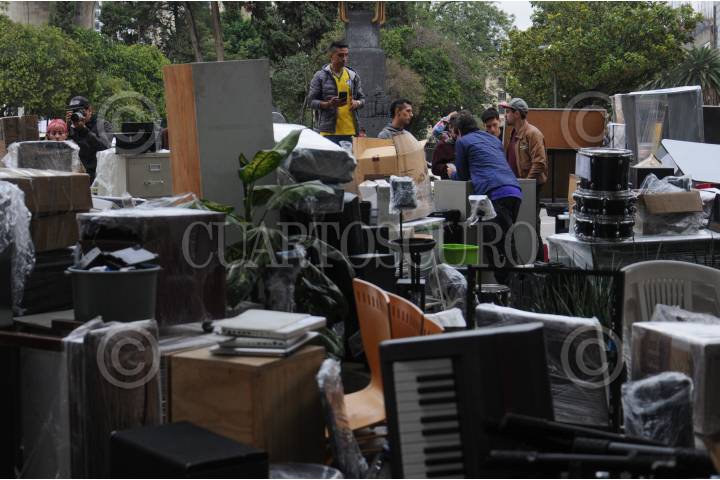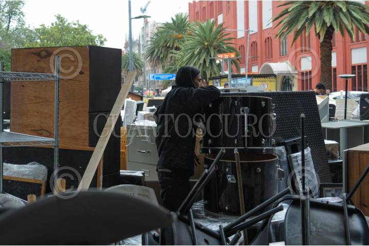 CIUDAD DE MÉXICO, 11JULIO2024.- Alumnos de la escuela de música comienzan a revisar los objetos que dejaron en la calle tras el desalojo. FOTO: DANIEL AUGUSTO /CUARTOSCURO.COM