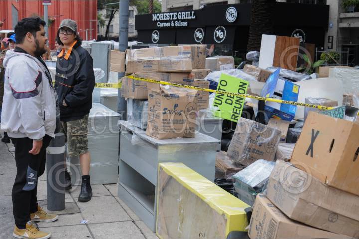 CIUDAD DE MÉXICO, 11JULIO2024.- Alumnos de Fermatta, escuela de música que fue desalojados esta mañana, observan los materiales e instrumentos que fueron dejados en la calle. FOTO: DANIEL AUGUSTO /CUARTOSCURO.COM