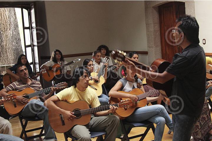 MORELIA, MICHOACÁN, 17JUNIO2014.- Con el apoyo del Programa de Desarrollo Cultural para la Juventud y del Centro Cultural UNAM Morelia, el Colectivo Molkajete (Xumatakua), realizó un curso-taller para la práctica de la música tradicional purépecha. Un acercamiento a través de talleres y espacios de diálogo que estará a cargo de músicos y promotores culturales purépecha, quienes enseñarán y compartirán al alumnado las técnicas, estructura y usos de la música tradicional, así como sus significados culturales dentro de las comunidades donde se ejecutan y su trascendencia en la cultura global de hoy. FOTO: JUAN JOSÉ ESTRADA SERAFÍN /CUARTOSCURO.COM