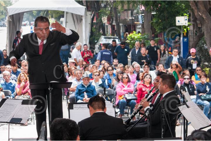 CIUDAD DE MÉXICO, 29SEPTIEMBRE2018.- La Banda Sinfónica de la Ciudad de México ofreció un concierto al aire libre sobre la calle Niza, casi esquina con Paseo de la Reforma. FOTO: DIEGO SIMÓN SÁNCHEZ /CUARTOSCURO.COM
