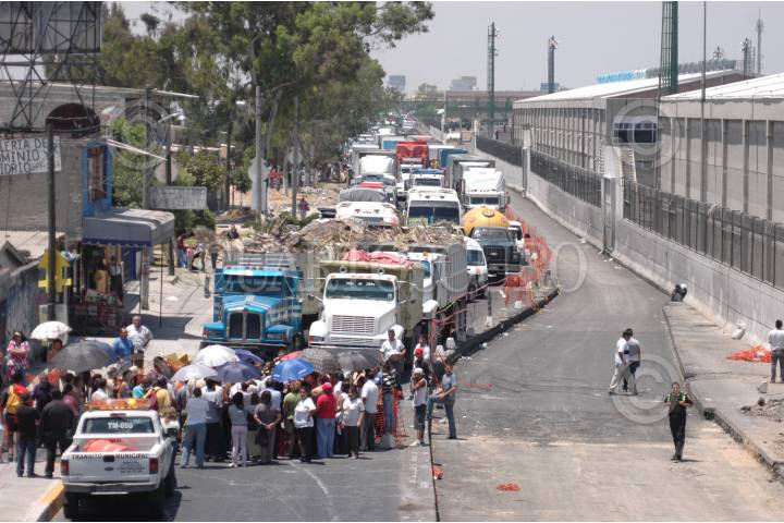 ECATEPEC, EDO. DE MÉXICO, 06MAYO2009.- Al menos 100 personas insatisfechas por que el sistema de agua potable que reciben del pozo de Cerro Gordo es insuficiente y no les llega de manera regular en sus hogares de la colonia Industrias Ecatepec, bloquearon por varias horas la avenida Central, casi esquina con avenida Industrias, causando un severo caos vial, desde los talleres de la linea B del metro hacia el Río de los Remedios, en el municipio de Nezahualcóyotl. FOTO: MARIO NULO/CUARTOSCURO.COM
