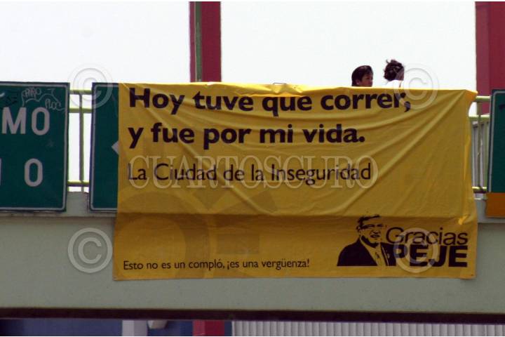 MEXICO, D.F., 24ABRIL2006.- Aparecieron anuncios en contra de Andrés Manuel López Obrador, candidato a la presidencia de la coalición Por el Bien de Todos, sobre un puente peatonal de Periferico a la altura de San Antonio. FOTO: Pedro Marrufo/CUARTOSCURO.COM