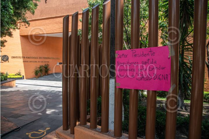 Cartulinas colocadas por personal del Instituto Personal de Perinatología permanecen al exterior de las instalaciones como parte de las protesta realizada hace unos días por la presunta escasez de insumos médicos para el tratamiento de pacientes con covid-19.