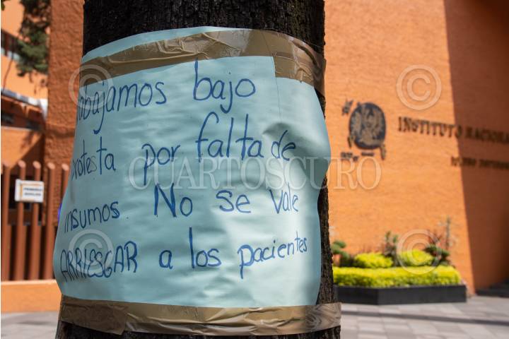 Personal médico del Instituto Nacional de Enfermedades Respiratorias (INER) protestaron afuera del hospital para exigir una solución a la falta de insumos, así como la exigencia de la renuncia de autoridades del INER