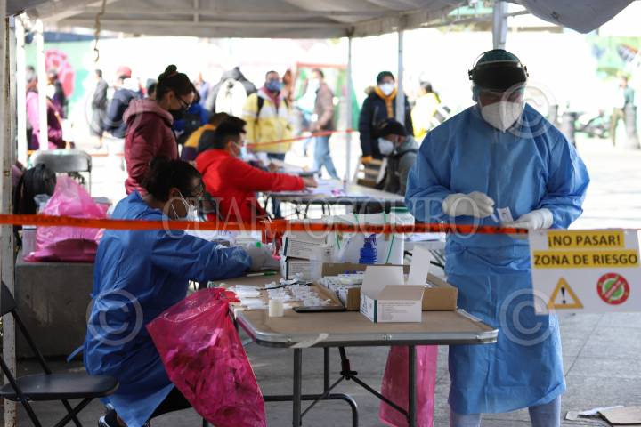 Personal de salud prepara los insumos para la realización de pruebas para la detección de Covid-19 en la Alcaldía Iztapalapa.