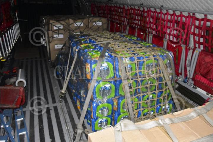 SANTA LUCÍA, ESTADO DE MÉXICO, 27OCTUBRE2023.- Con motivo del paso del Huracán Otis en el Estado de Guerrero, a las ocho horas despegaron 2 Aeronaves CASA de la Base Aérea Militar Número trasladando aproximadamente 4 toneladas de Insumos para la población afectada. FOTO: SEDENA/CUARTOSCURO.COM