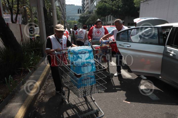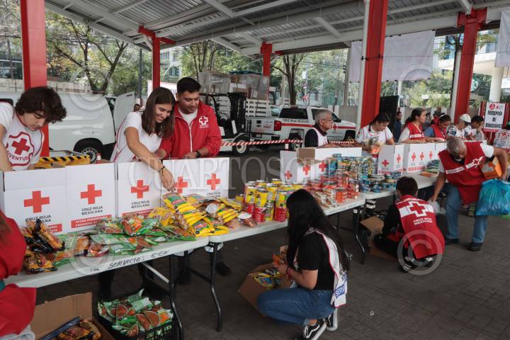 CIUDAD DE MÉXICO, 27OCTUBRE2023.- Centro de acopio de la Cruz Rojas Mexicana donde la gente acude donar víveres para los damnificados de Acapulco. FOTO: CUARTOSCURO.COM
