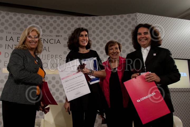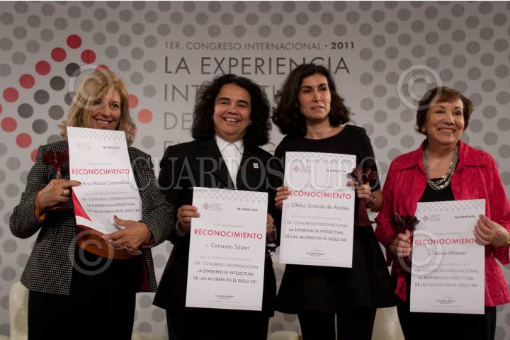 MÉXICO D.F., 08MARZO2011.- Consuelo Sáizar, presidenta de Conaculta, Ofelia Grande de Andrés, Ana María Cabanellas, Teresa Mlawer, durante su participación la mesa de Trabajo de Editoras del Congreso La Experiencia Intelectual de Mujeres del Siglo XXI, que se realizo en el Palacio de Bellas Artes dentro del marco de la celebración del Día Internacional de la Mujer. FOTO: GUILLERMO PEREA/CUARTOSCURO.COM