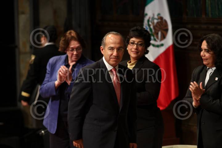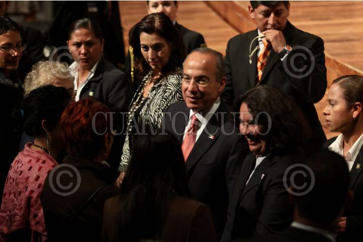 MÉXICO, D.F., 11MARZO2011.- El presidente Felipe Calderón durante la clausura del congreso La experiencia Intelectual de las Mujeres que se realizo en el Palacio de Bellas Artes. FOTO: RODOLFO ANGULO/CUARTOSCURO.COM