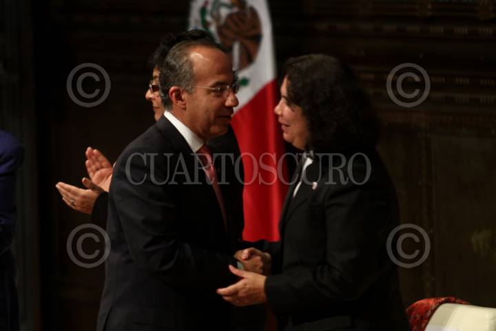 MÉXICO, D.F., 11MARZO2011.- El presidente Felipe Calderón y Consuelo Saizar, presidenta de Conaculta durante la clausura del congreso La experiencia Intelectual de las Mujeres que se realizo en el Palacio de Bellas Artes. FOTO: RODOLFO ANGULO/CUARTOSCURO.COM