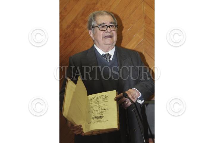 MÉXICO, D.F., 24SEPTIEMBRE2012.- Miguel León Portilla, antropologo e historiador, durante el coloquio homenaje “Francisco Xavier Clavijero en la memoria mexicana”, a 225 años de su fallecimiento, realizado en la Biblioteca Nacional de la UNAM. FOTO: SAÚL LÓPEZ /CUARTOSCURO.COM