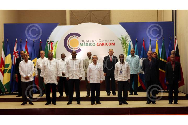 PLAYA DEL CARMEN, QUINTANA ROO, 21FEBRERO2010.- Los mandatarios de distintos países como Belice, Barbados, Dominica, Granada, Haití, Jamaica y Trinidad y Tobago, se reunieron para tomarse la foto oficial durante la primer cumbre de México-CARICOM que se llevo acabo en un hotel de la zona. FOTO: ARIEL GUTIERREZ/CUARTOSCURO.COM