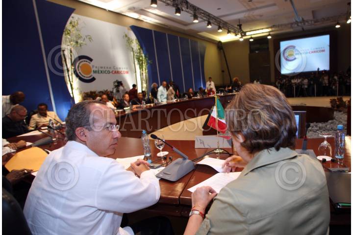 PLAYA DEL CARMEN, QUINTANA ROO, 21FEBRERO2010.- Felipe Calderón, Presidente de México inauguro la Primera Cumbre de México-CARICOM que se llevo a cabo en un hotel de la zona. FOTO: ARIEL GUTIERREZ/CUARTOSCURO.COM