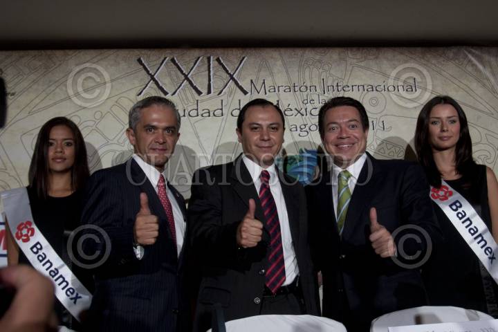 MÉXICO D.F., 25JULIO2011.- Miguel Ángel Mancera Espinosa, Procurador de Justicia del D.F. y Gerardo Villanueva Albarrán, al momento de dar a conocer los detalles de la realización del XXIX Maratón Internacional de la Ciudad de México que se realizara el próximo 28 de Agosto en esta ciudad. FOTO: GUILLERMO PEREA/CUARTOSCURO.COM