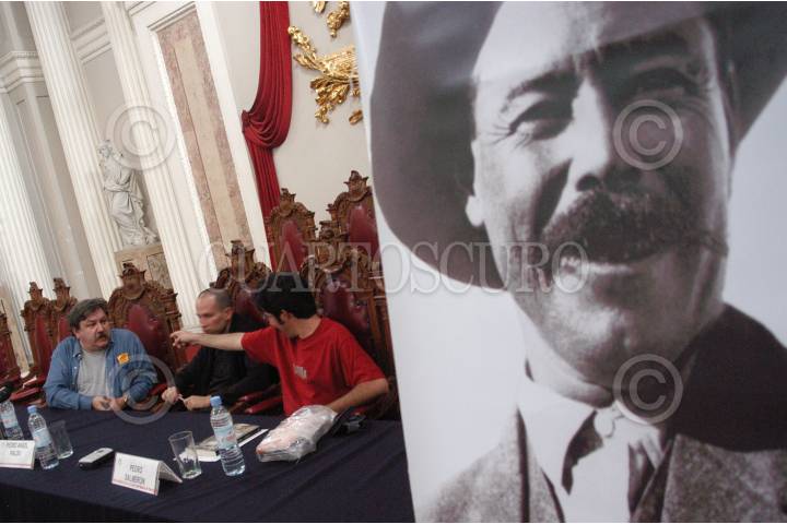 MÉXICO D.F. 25FEBRERO2007.- Los escritores, Paco Ignacio Taibo II, acompañado de Pedro Ángel Paulo y Pedro Salmerón, durante la presentación de sus respectivos libros "Pancho Villa" "Zapata" "Divisió del Norte" respetivamente, esto dentro de las actividades de la fería intenacional del libro en el Palacío de Minería de la UNAM. FOTO: GUILLERMO PEREA/CUARTOSCURO.COM