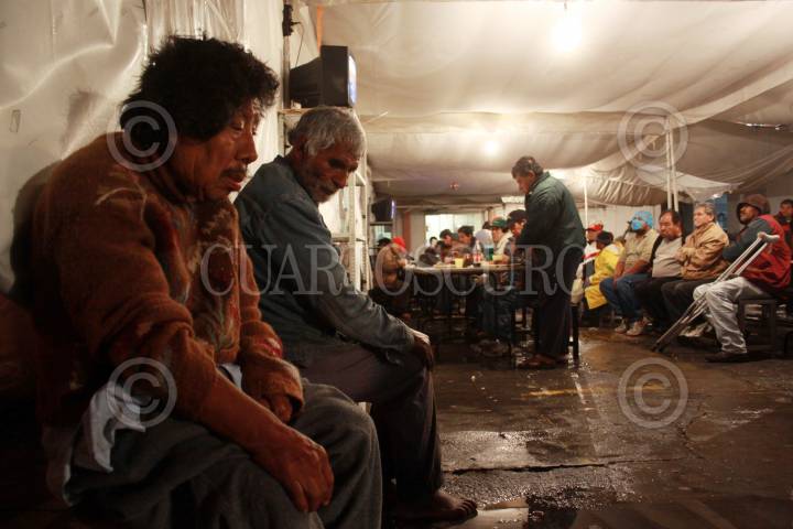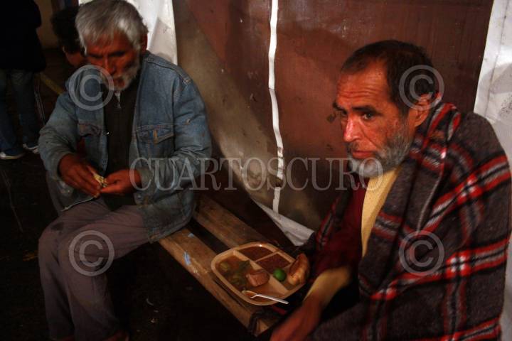 MÉXICO, D.F., 10ENERO2010.- Cientos de personas en situación de calle acuden esta noche al albergue de Coruña del Instituto de Asistencia e Integración Social (IASIS) donde se les brinda alimentos cobijas y un espacio para pasar la noche; Este albergue luce lleno en estos días debido al intenso frío que ha provocado la entra del frente frio número 22. FOTO: SÁSHENKA GUTIÉRREZ/CUARTOSCURO.COM