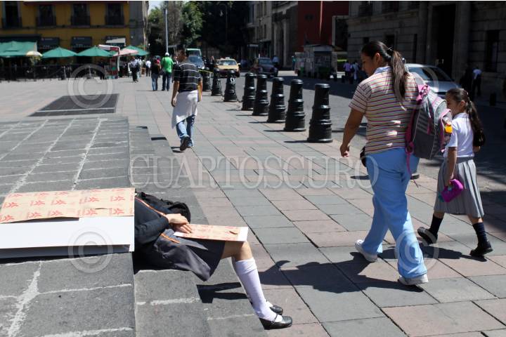 MÉXICO, D.F., 21OCTUBRE2010.- Un engaño óptico sorprendía a los capitalinos que pasaban junto a una estudiante de secundaria que descansaba plácidamente sobre las escalinatas del Caballo de Tolsa. La escolar se refugiaba de los intensos rayos del sol con unas cartulinas seguramente destinadas a algún trabajo escolar. FOTO: MOISÉS PABLO/CUARTOSCURO.COM
