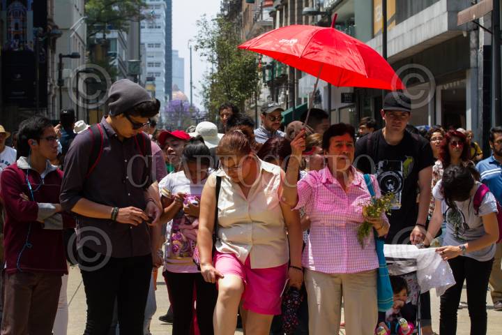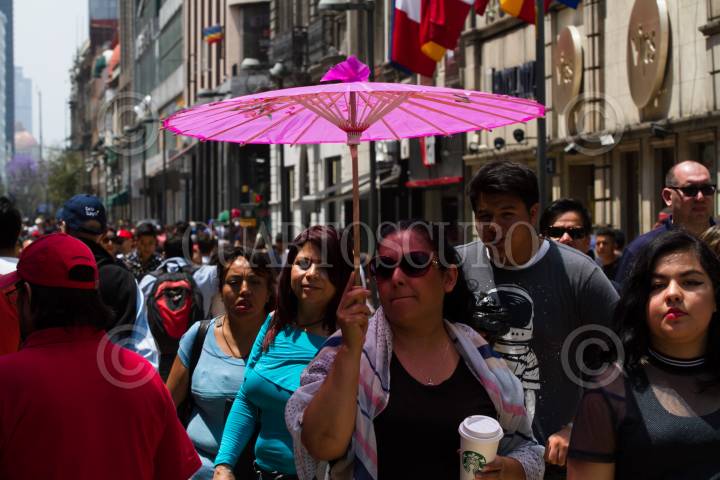 CIUDAD DE MÉXICO, 29MARZO2018.- Intenso calor se ha dejado sentir estos primeros días de la primavera, por lo que muchas personas que pasean por el Centro Histórico utilizan paraguas para mitigar los rayos del sol. FOTO: MOISÉS PABLO /CUARTOSCURO.COM