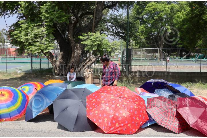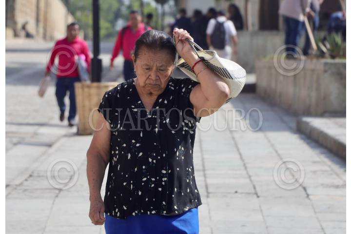 La capital oaxaqueña padece con la ola de calor que afecta todo el territorio nacional, los ciudadanos buscan refrescarse con bebidas frías y paraguas para mitigar los intensos rayos del sol.
