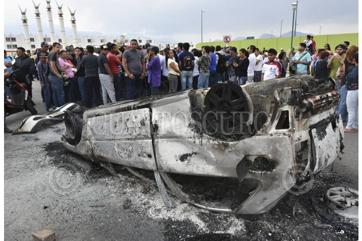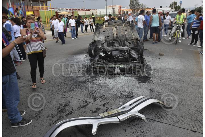 CHALCO, ESTADO DE MÉXICO, 19ABRIL2016.- Un vehículo fue incendiado por arte de los habitantes de la colonia unidad habitacional los Héroes Chalco, al intentar linchar a tres hombres que asaltaban el lugar; al llegar la policía a rescatar a los ladrones, atropellaron a unas personas, lo que originó más desastre. FOTO: ARMANDO MONROY /CUARTOSCURO.COM
