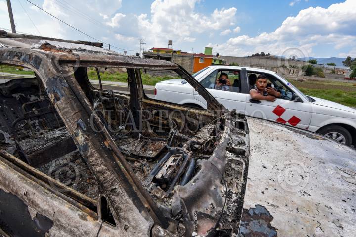 Vecinos del barrio de San Juan en el municipio de Otzolotepec quemaron cuatro vehículos después de que fueron rescatados dos hombres acusados de intento de secuestró a los cuales intentaron linchar.