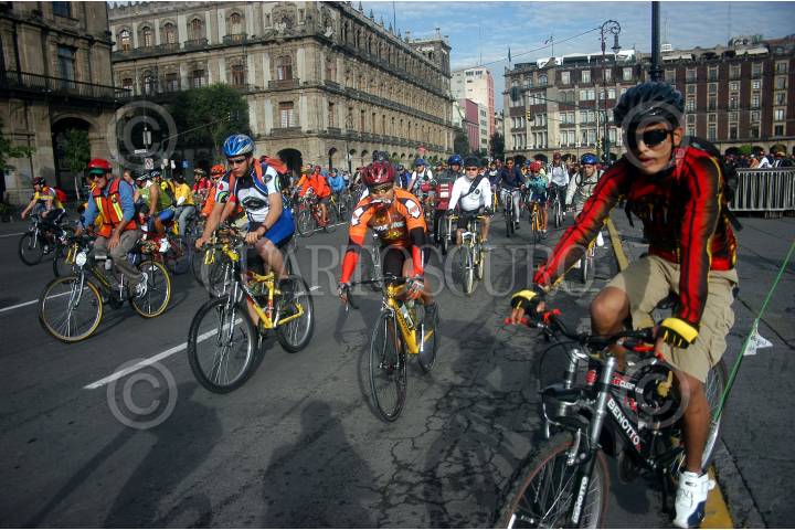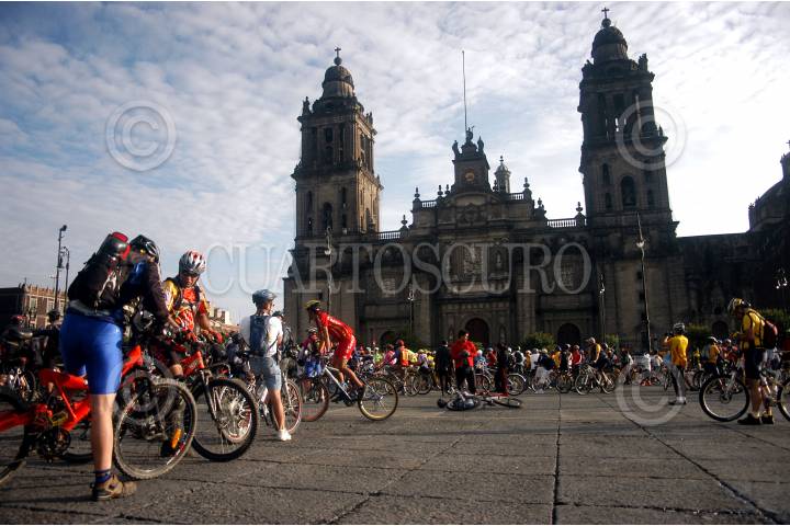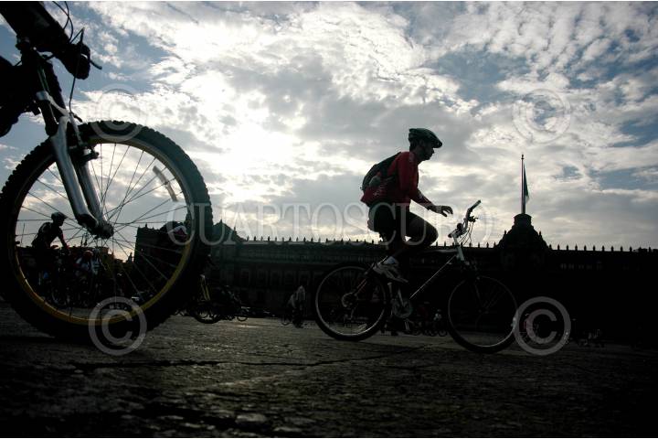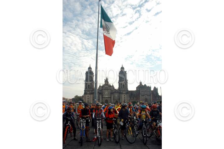 MÉXICO D.F. 08JULIO2007.-Decenas de ciclista de diversas organizaciones, realizarón la primer Rodada Pro Ciclista Interestatal Tramo Distrito Federal-Morelos, que dio inicio en Zócalo y posteriormente concluiria en Cuernavaca Morelos. FOTO: GUILLERMO PEREA/CUARTOSCURO.COM