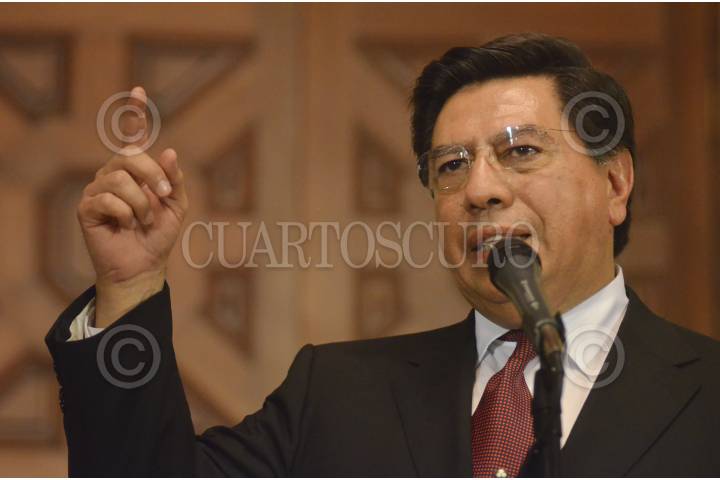 MORELIA, MICHOACÁN, 01AGOSTO2013.- El gobernador interino del estado de Michoacán, Jesús Reyna García, anuncio la signa del “Acuerdo por Michoacán” de la cual no dio fechas y acciones concretas respecto a la estrategia en la lucha contra la inseguridad en la entidad. Dicho acuerdo no contempla como principal urgencia la seguridad del estado sino otros rubros como la economía, turismo, campo e inversiones. FOTO: ALÁN ORTEGA /CUARTOSCURO.COM