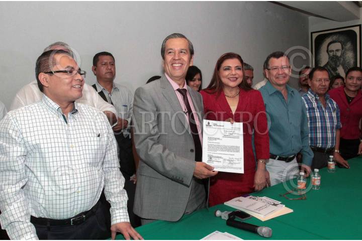 CHILPANCINGO, GUERRERO, 15 ENERO2015.- Salvador Rogelio Ortega Martínez gobernador interino, durante la entrega del cuarto informe de gobierno a la meza directiva del congreso del estado y que recibió el presidente de la comisión de gobierno del congreso del estado Bernardo Ortega. FOTO: JOSÈ I. HERNÀNDEZ /CUARTOSCURO.COM