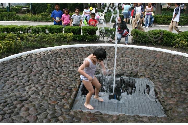 MÉXICO, D.F., 11OCTUBRE2008.- Un niño se refresca y juega con el agua de una fuente de un parque en la ciudad, hasta quedar en ropa interior. FOTO: SÁSHENKA GUTIÉRREZ/CUARTOSCURO.COM