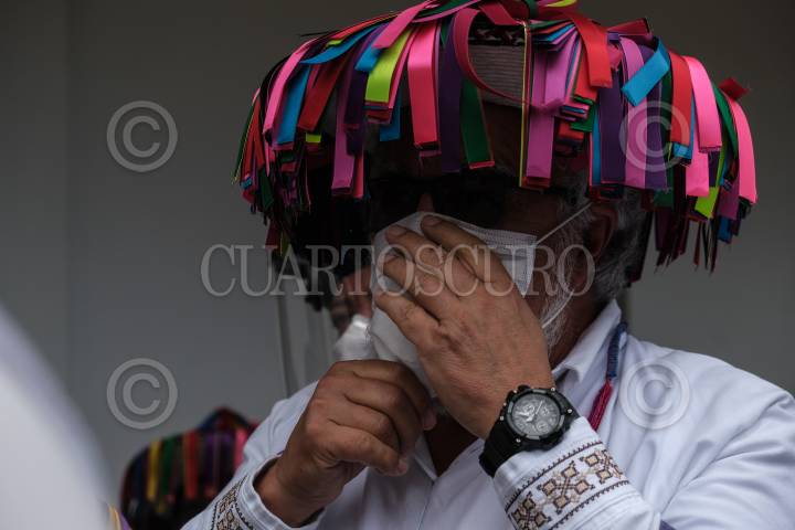 Alejandro Encinas, Subsecretario de Derechos humanos, población y migración, escucha la palabra del representante de las autoridades tradicionales de Santa Martha.