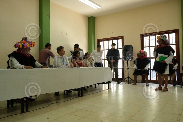 Autoridades tradicionales escuchan el discurso de Alejandro Encinas, Subsecretario de Derechos humanos, población y migración.