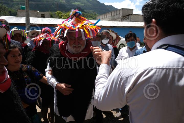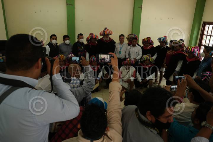 Alejandro Encinas, Subsecretario de Derechos humanos, población y migración, es recibido por las autoridades tradicionales de Chenalhó.