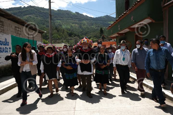 Alejandro Encinas, Subsecretario de Derechos humanos, población y migración, y otros funcionarios estatales y municipales, caminan rumbo a la casa del presidente municipal de Chenalhó para disfrutar de la comida típica de la región.
