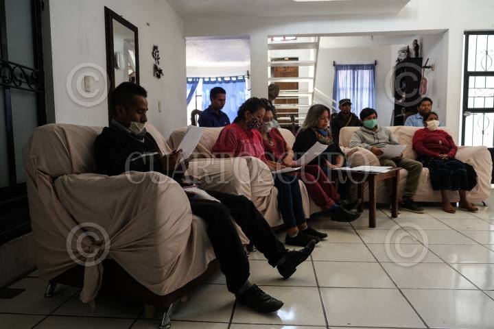 Detalle de la mesa donde se postraron los documentos que relatan las agresiones que han sufrido en comunidades de Aldama.