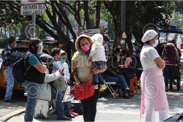 Una mujer con bebe en brazos cruza por el área de urgencias del Hospital de los Venados en donde son atendidas personas contagiadas por COVID-19. FOTO: ROGELIO MORALES /CUARTOSCURO.COM