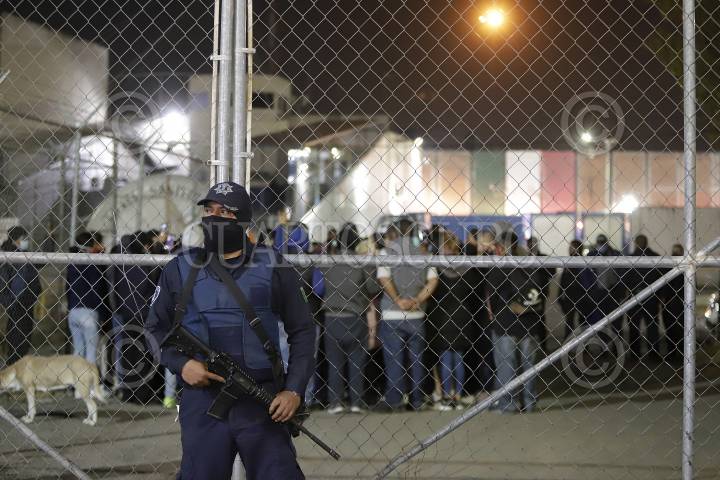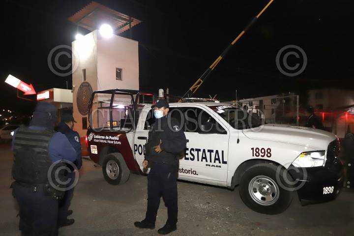Movilización policiaca afuera del Centro Penitenciario de Puebla tras enfrentamiento de internos, en el cual resultaron 6 personas lesionadas y una perdió la vida.
