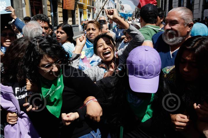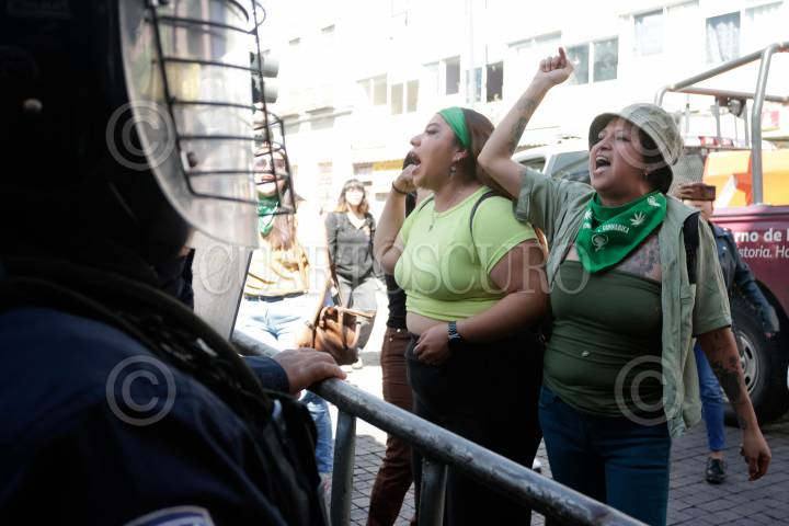 PUEBLA, PUEBLA, 15JULIO2024 .- Grupos provida e integrantes de colectivos feministas realizaron manifestaciones afuera del Congreso de Puebla durante sesión ordinaria donde se aprobó la despenalización del aborto, con 29 votos a favor, siete en contra y cuatro abstenciones. Con esto el estado poblano se convierte en la entidad número 14 en aprobar la interrupción legal del embarazo antes de la semana 12 de gestación. FOTO: MIREYA NOVO/CUARTOSCURO.COM