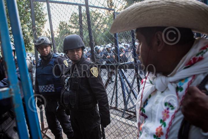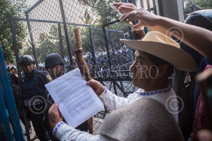 CIUDAD DE MÉXICO, 12FEBRERO2018.- Ejidatarios del Estado de México arribaron en una marcha desde Toluca a la Residencia Oficial de Los Pinos para entregar un documento donde se oponen a la construcción del tren interurbano Toluca-México. FOTO: TERCERO DÍAZ /CUARTOSCURO.COM