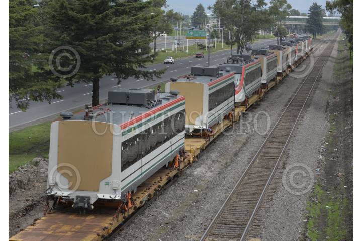 TOLUCA, ESTADO DE MÉXICO, 18JUNIO2018.- Arribaron 10 vagones del Tren Interurbano México-Toluca a la capital mexiquense, trasladados por tren fueron estacionados en la carretera Toluca-Atlacomulco, y posteriormente serían llevados en plataformas al patio de servicios del Tren. FOTO: ARTEMIO GUERRA BAZ /CUARTOSCURO.COM
