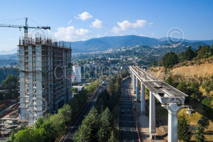 Toma panorámica de las obras del Tren Interurbano México-Toluca, en el tramo que cruza la Ciudad de México.