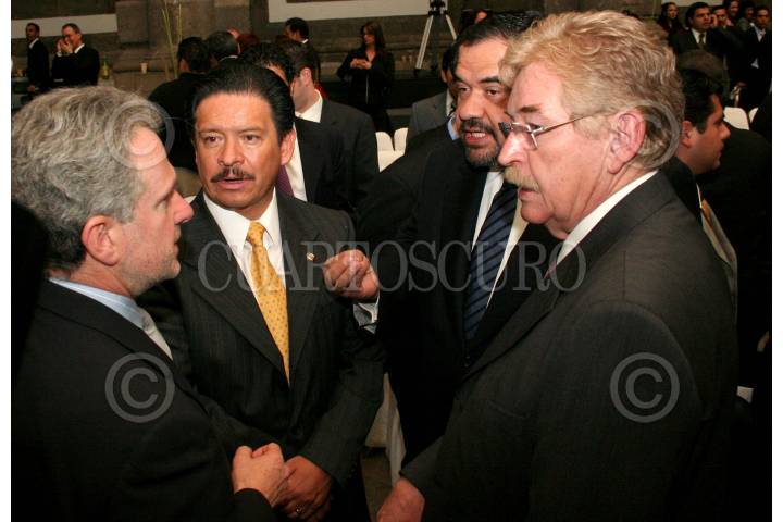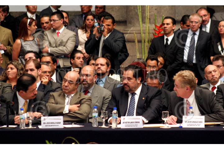 MÉXICO, D.F., 25ABRIL2007.- El líder de la bancada del PRD en el Senado, Carlos Navarrete, el senador Jesús Murillo Karam, y los líderes de la bancada del PAN y PRD en la Cámara de Diputados, Héctor Larios y Javier González Garza, respectivamente, durante la instalación de la comisión para la Reforma del Estado. FOTO: ISAAC ESQUIVEL/CUARTOSCURO.COM