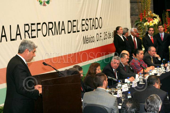 MÉXICO, D.F., 25ABRIL2007.- El gobernador de Nuevo León y presidente de la Comisión para la Reforma del Estado de la CONAGO, Natividad González Parás, durante su intervención en la instalación de la Comisión para la Reforma del Estado. FOTO: ISAAC ESQUIVEL/CUARTOSCURO.COM
