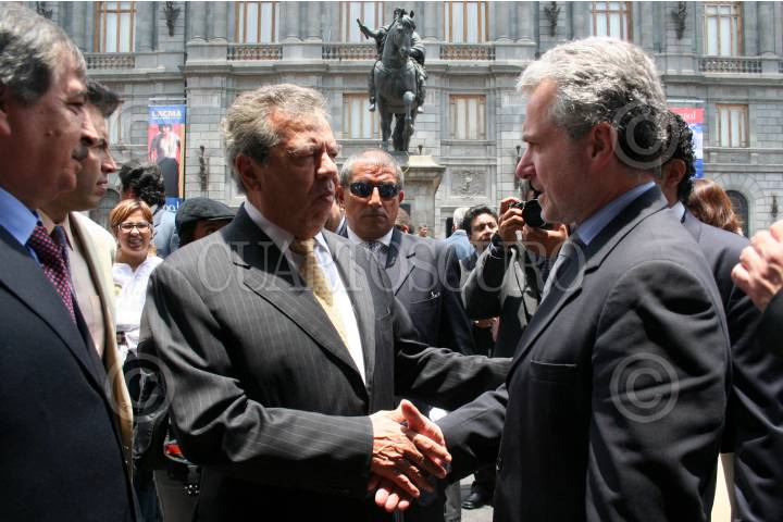 MÉXICO, D.F., 25ABRIL2007.- El político Porfirio Muñoz Ledo y el senador panista Santiago Creel, al término de la instalación de la Comisión para la Reforma del Estado. FOTO: ISAAC ESQUIVEL/CUARTOSCURO.COM
