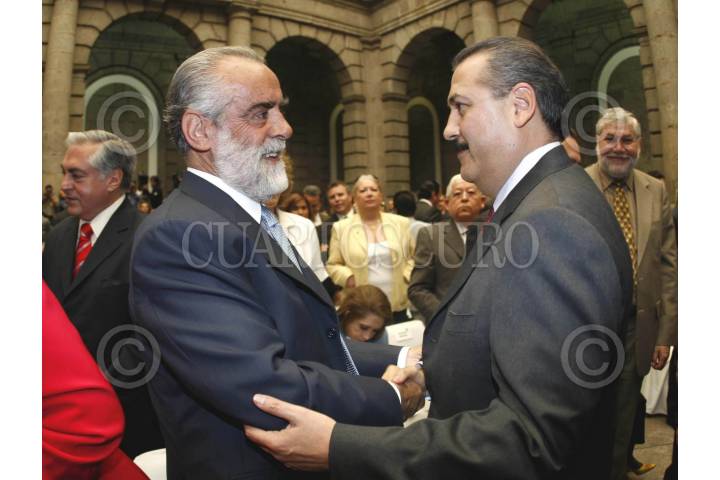 MÉXICO, D.F., 25ABRIL2007.- El político Diego Fernández de Cevallos y el presidente de la mesa directiva del Senado, Manlio Fabio Beltrones, al término de la instalación de la Comisión para la Reforma del Estado. FOTO: SENADO/CUARTOSCURO.COM