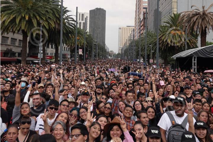 Cientos de fans acudieron a escuchar el concierto del grupo musical Intocable en el Monumento a la Revolución