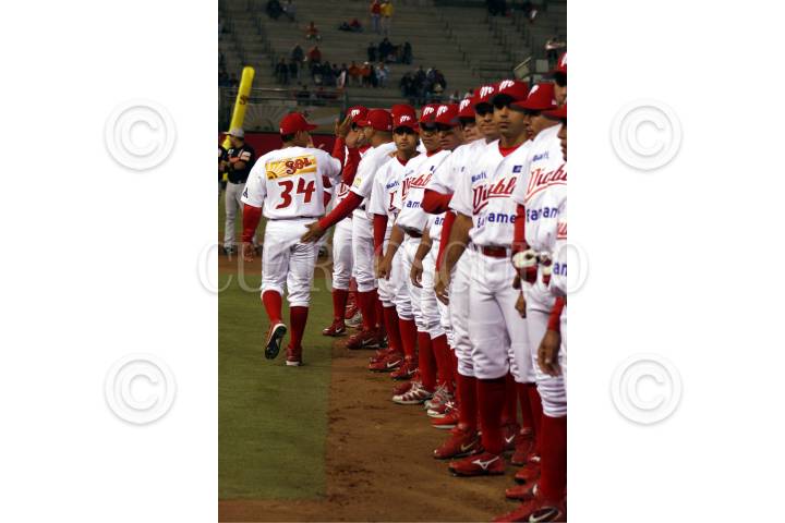 MÉXICO D.F. 23MARZO 2006.- El equipo de los Diablos Rojos de México, durante el primer encuentro de inauguración de la serie del beisbol mexicano, en el Foro Sol. FOTO: Diego Gallegos / CUARTOSCURO.COM